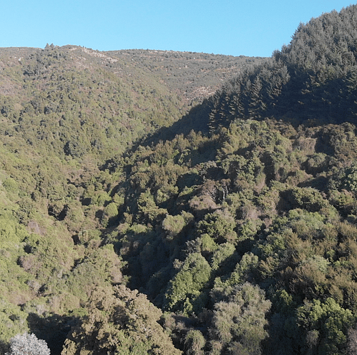 Established in August 2019 for the benefit of the local Waimate Community and Visitors. The 4.5 Klm (94Ha) pest predator fenced site was completed in June 2021 by the Trus with the vision to protect and preserve remnants of ancient native forest of tōtara, mataī, kahikatea, kо̄whai and native fuschia (that survived the great fire of 1878) and to replant 20,000 + native trees alongside the regenerating forest - home to endemic native birdlife including korimako (Bellbird), tui, Kereru (Native Wood Pigeon), piwakawaka (Fantail), titipounamu (Rifleman). A pest predator trapping programme commenced in January 2021 and to-date some 300 wallaby, 190 possum, numerous mustelids, rats and mice have been eliminated with a number of DOC traps set throughout the sanctuary. The vision is to become a wallaby and mustelid free sanctuary to enable the safe re-introduction of SI Robin and tieke (Saddleback). The Ecosanctuary has a number of recreational walking and mountain bike tracks maintained by volunteers from the local groups. The Ecosanctuary has a QE11 covenant status 2022.