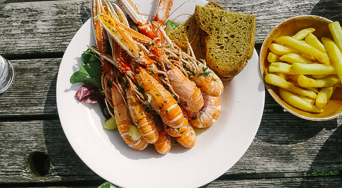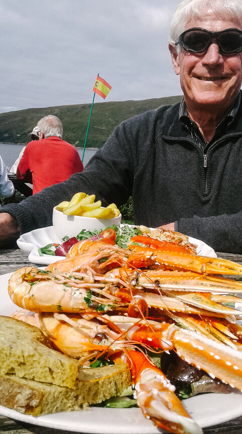 We then headed to Tobermory and sun came out! It is such a pretty place and harbour, with stunning white sand. We had our fresh seafood platter on the harbourside wharf plus the haddock fish and chips. We were all very much in foodie heaven! (All we needed was a chilled glass of Point Bush Sauvignon Blanc to really top things off)
