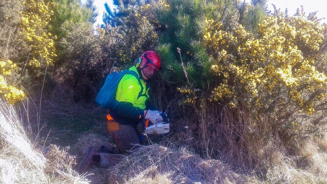 A team of 7 x Foresters from Dunedin (DM Holding) have been working their way through gorse and along tracks to reach these young pine trees to cut them off and daub stumps with XtreeBasal (Wet & Dry) product to ensure no further regrowth.