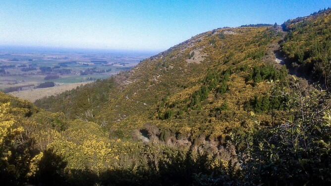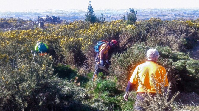 It's a big assignment but they have made good progress. In Tough going terrain through the gorse (all showing up in its yellow flower!) and steep hill face slopes make it challenging. This will prevent the pine trees from continuing to seed in the future, allowing native tree species to flourish uncontested for light, rain and nutrients!
