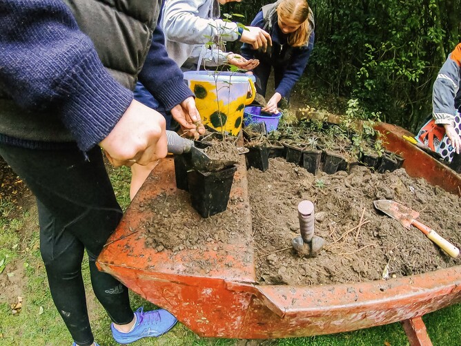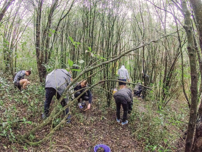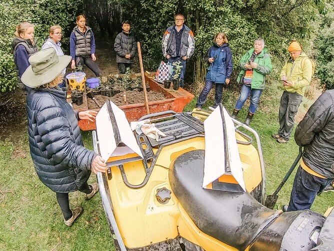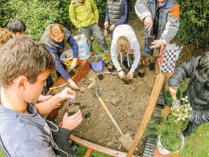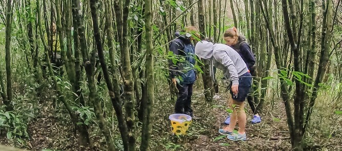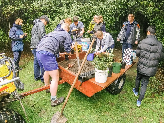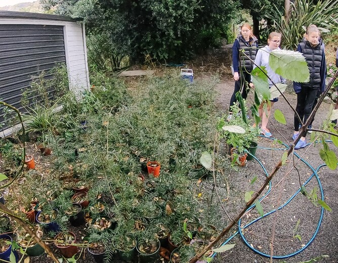 The team of students who bravely faced a miserable grey rainy day in the bush, helped to find and pot the latest crop of Totara seedlings to be rescued, and these will eventually be rehomed in another part of the Ecosanctuary once they have matured.