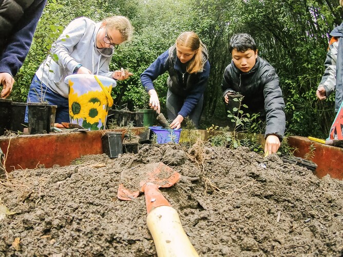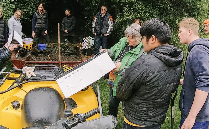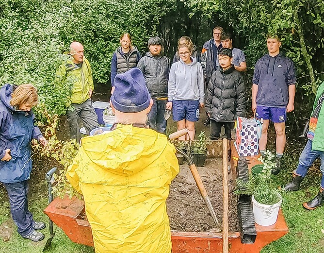 While they were here, the students were also able to see some of our majestic ancient Totara and Kahikatea, hear about our predator monitoring programme (click here to read more about our tracking tunnels!), and see some of the Totara rescue seedlings that were potted two years ago.