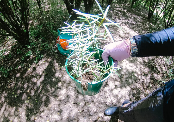Ancient mature Kahikatea here at Point Bush Ecosanctuary (above) and their seedlings (below) being safely transferred to where they can mature, before they will be replanted in a suitable place where they can grow and flourish to maturity over the next 1000 years here at Point Bush.