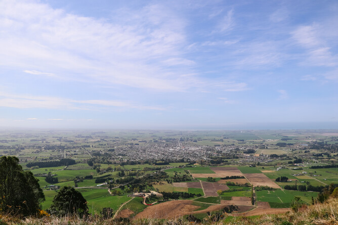 Overlooking Waimate Township from the infamous "red bench seat" which offers unrivaled views out to the coastline! (and an excellent stop to catch your breath)