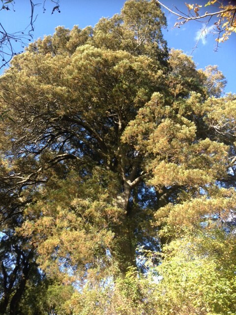 There at the water's edge stand 3 mighty Kahikatea trees with each one likely to be a thousand years old! Also known also as White Pine, (Dacrycarpus dacrydioides) belongs to the ancient podocarp family of which Totara, Miro, Matai and Rimu are also members. We are so incredibly fortunate to have these precious Kahikatea giants still standing today as so many have been felled and logged in the past.
