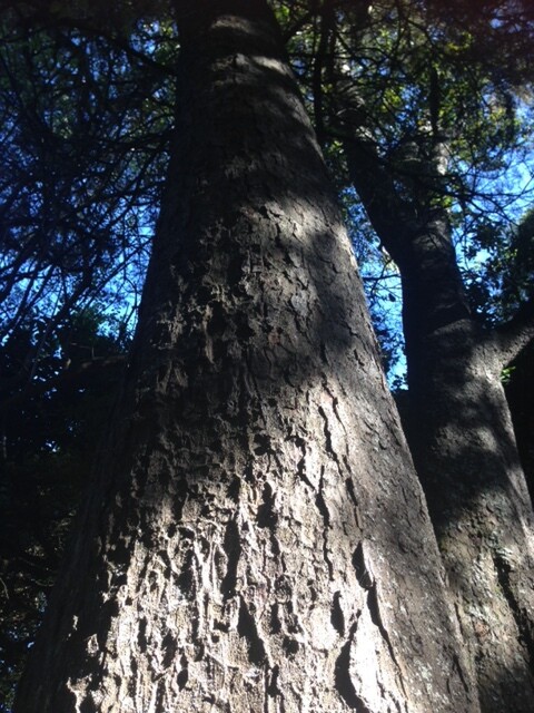 As I walk the uphill track passing by very ancient Totara, admiring their impressive trunk girth -suddenly there is a whirring of wings and 3 Tuis alight overhead and proceeded to call and chatter only a few feet above my head. Then as suddenly, they dart away like arrows through the Bush - their distinctive bird call so clear and and loud. They fly fast, their wings sounding like mini choppers. I would have seen 8 or more Tui today, such an unusual number in so short a time but there were others also out in numbers today. Flashing tails, the Fantails were having a grand time catching wee bugs and many Bellbirds enjoying the Bush were very vocal in celebrating the glorious day.It was more of a Meditation Walk than a fast exercise pace walk. It suited my mood and I was content to slow the pace and take my time to view things up close and stand and listen.