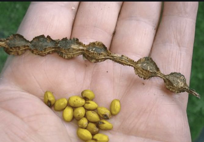 The hard resistant yellow seed pods are very tough and notoriously difficult to propagate.  However, I aim to have a go and have gathered a supply of pods from these early flowering trees to try and propagate for future planting here at the Ecosanctuary.