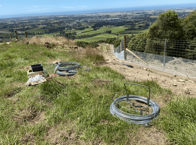 Once the Ecosanctuary fence is enclosed, a solar powered electric wire will be activated on the fence exterior and along with the barbed wire at the base of the fence line and skirt mesh to keep the pests and predators out! There is already a lot of confused wallaby wandering around on the outside wondering “who put that barrier there”! We believe we might just be the first site within the region to successfully eradicate Wallaby thanks to the installation of the fence. 30 traps recently installed have since caught possum, stoats and feral cats - with traps being checked and monitored regularly by a group of volunteers who attended our recent public workshop.