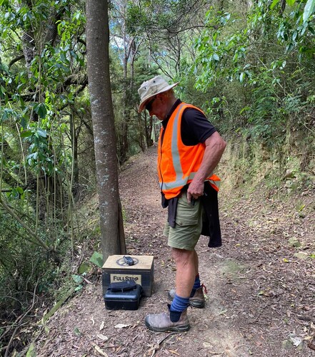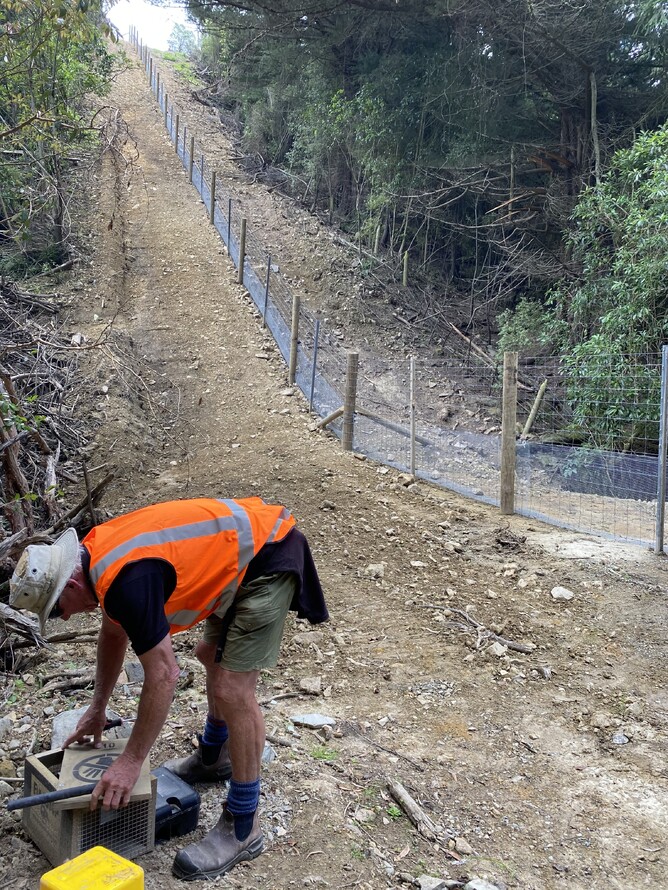 Following a presentation on the Ecosanctuary project and an update on the predator fence, we moved off up the hill to the Bush and made straight for the colossal giant Kahikatea trees of around 800 to a thousand years old. Its quite extraordinary to look up to the canopy towering overhead and then to search on the footpath below to find tiny seedlings of only a few centimetres height...just to think that they will in turn become another giant of the Bush..given a few hundred years on!We then walked along the Big Easy track where there are now a number ofDOC Traps and an active trapping programme happening with our trained and authorised volunteers checking every two days. Since the trapping commenced 8 weeks ago there have been 35 possums and a number of stoats, weasels,hedgehogs and a ferret caught. The aim is to increase the number of traps and place these stations in other areas of the regenerating native forest.