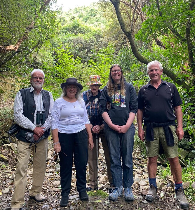 We wandered along the track with a following of several piwakawaka very actively watching for insects we disturbed ...taking our time...to look at the many varieties of tree species, fungi (stinkhorn) and other species. The group had plenty of questions but mostly it was the general mood of enjoyment at seeing remnants of original native bush and the predator fence work that will ensure the regeneration of much more bush once the remaining pocket of Wallaby now inside the 95 haEcosanctuary is eliminated.A great afternoon with very interested members of the F & B group topped off with a cuppa and biscuits back at the Visitor Centre.
